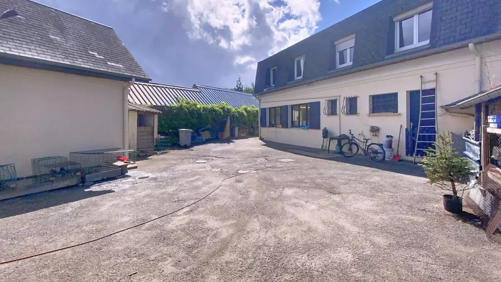 Alliances immobilières vous propose cette maison avec local commercial. Comprenant: Rdc: Une salle de réception avec bar de 50 m² environ, un local commercial avec entrée indépendante de 20 m² environ, une réserve, un bureau, un WC, une buanderie. A l'étage : Un grand séjour lumineux avec cuisine ouverte équipée, trois chambres, un bureau, un WC séparé, une salle de bain. Exterieur: Plusieurs dépendances de 110 m² environ dont un garage, atelier. Terrain arboré et clos.