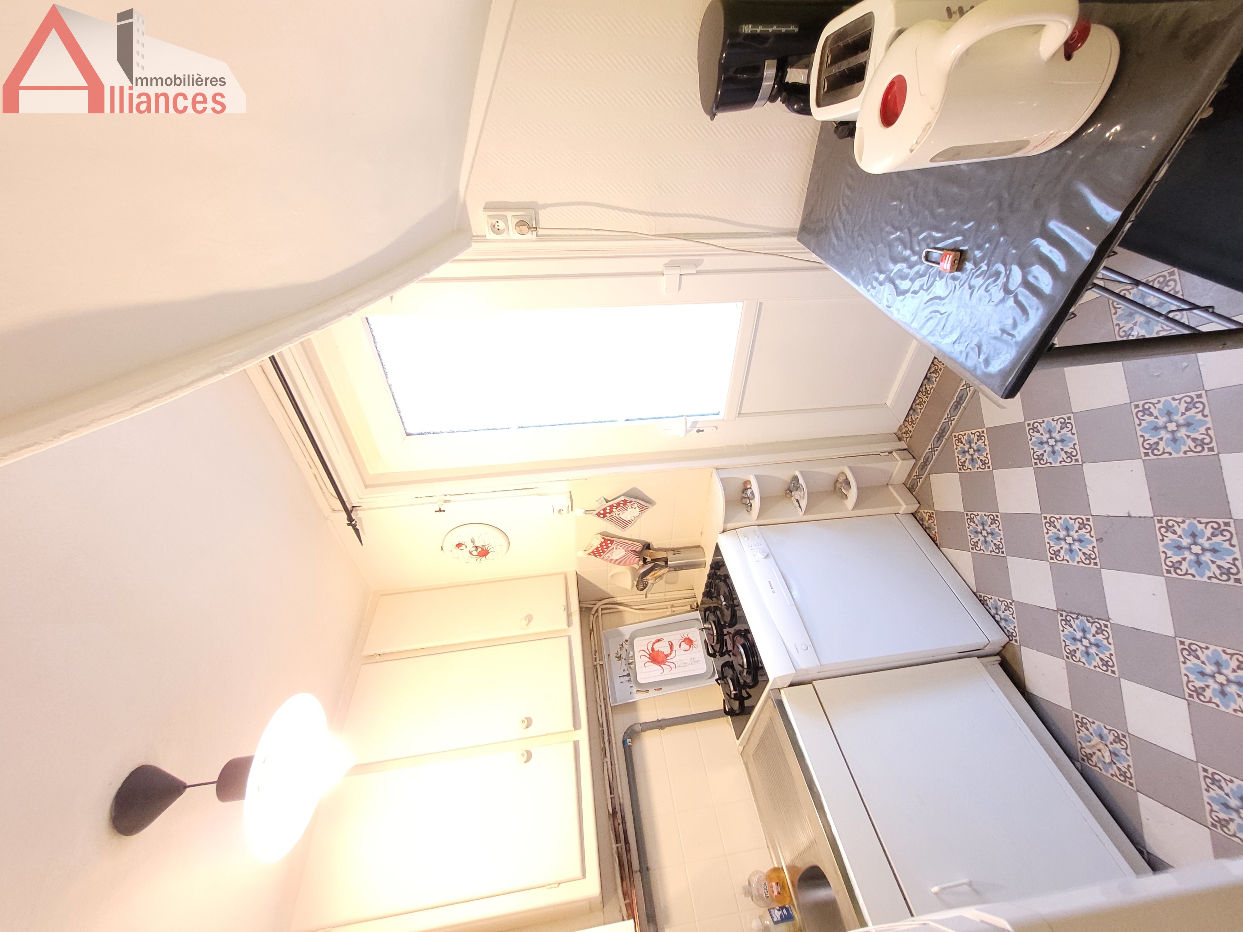 BIEN IDEAL de 43m² pour pied à terre ou location. Situé en plein coeur du Tréport, dans le quartier des Cordiers, proche du Funiculaire et de la plage, des commerces. Elle comprend au RDC un séjour avec de grands placards et cheminée d'ornement, et une cuisine. Au 1er étage : un salon avec un couchage Au 2ème : une chambre, une salle d'eau, un WC séparé. Grenier accessible avec un escalier escamotable neuf Huisseries PVC double vitrage et volets persiennes, chauffage au gaz de ville (chaudière à condensation). Electricité revue récemment. Stationnement gratuit.